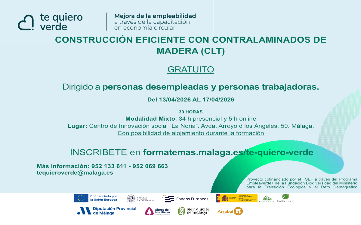 Anticipándonos al futuro y a la normativa europea, la Diputación Provincial de Málaga, con su proyecto TeQuieroVerde, lleva a su provincia esta formación especializada, de manera gratuita, en un sector que está generando cada vez más empleo.