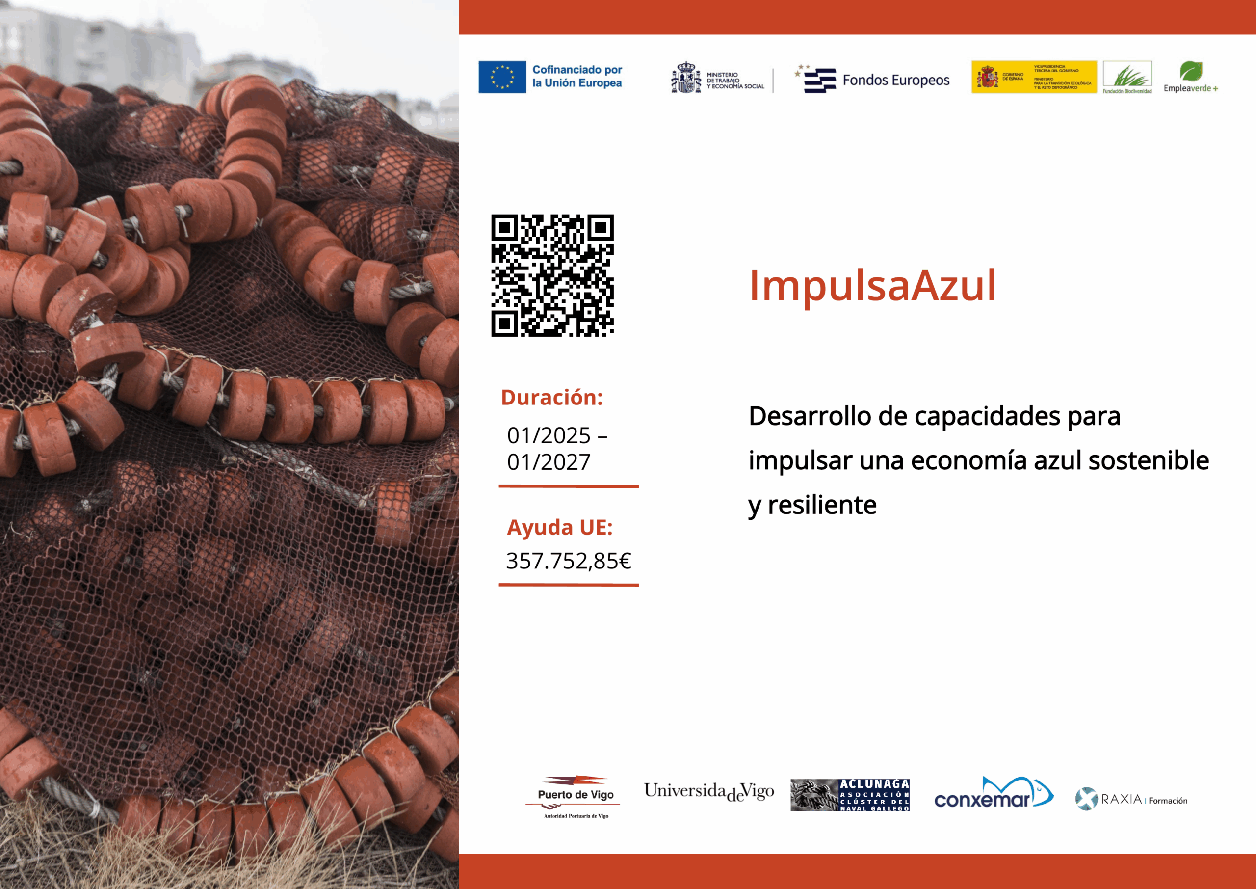 La Autoridad Portuaria de Vigo presentó el 20 de mayo de 2025 una nueva edición del proyecto ImpulsaAzul, que lidera, en agrupación con cinco instituciones referentes en el ámbito de la Economía Azul; la Universidad de Vigo, ACLUNAGA (Asociación del Clúster Naval de Galicia), CONXEMAR (Asociación Española de Mayoristas, Importadores, Exportadores y Transformadores de Productos de la Pesca y Acuicultura) y Raxia Formación.