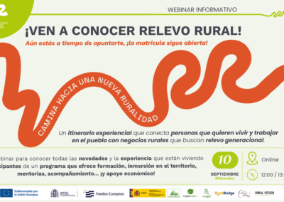 En este webinarios explicaremos las novedades del proyecto Relevo Rural y cómo matricularte en sus itinerarios.
