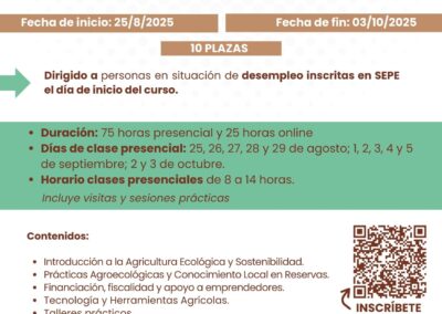 El proyecto Ecobios Next continua sus actividades de formación con el inicio a finales de agosto de una nueva acción formativa en Producción agraria ecológica y sostenible en Galicia, en la localidad de Allariz.