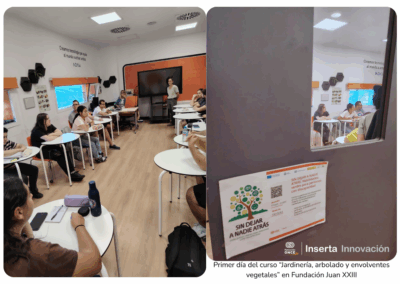 El primer curso de JARDINERÍA, ARBOLADO Y ENVOLVENTES VEGETALES del proyecto “Sin dejar a nadie atrás” ha llegado a su fin. Ha sido un curso muy enriquecedor tanto para el alumnado como para la formadora en estas 4 semanas de formación en la Fundación Juan XXIII.