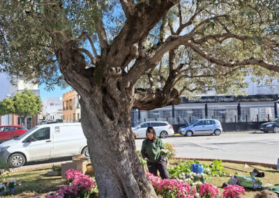 El alumnado del Programa Empleaverde+ del Proyecto A TU VERA está finalizando las plantaciones de Navidad en uno de los enclaves más destacados del municipio Los Palacios y Villafranca, llenando la zona de luz, color y ambiente festivo.